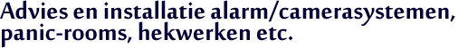 Als u camera’s wenst, op welke plekken moeten deze worden geïnstalleerd en op welke manier wilt u de beelden zien? Op uw telefoon, iPad? Een scherm bij uw bed? Is een panicroom echt noodzakelijk of zal een camerasysteem met directe meldkameraanmelding voldoende zijn. Wij werken op dit gebied samen met de beste aanbieders, veelal lokaal in de buurt te vinden. Mensen die hun werk met liefde doen en mensen die zich bij storingen en dergelijke dezelfde dag deze storingen willen en komen oplossen.